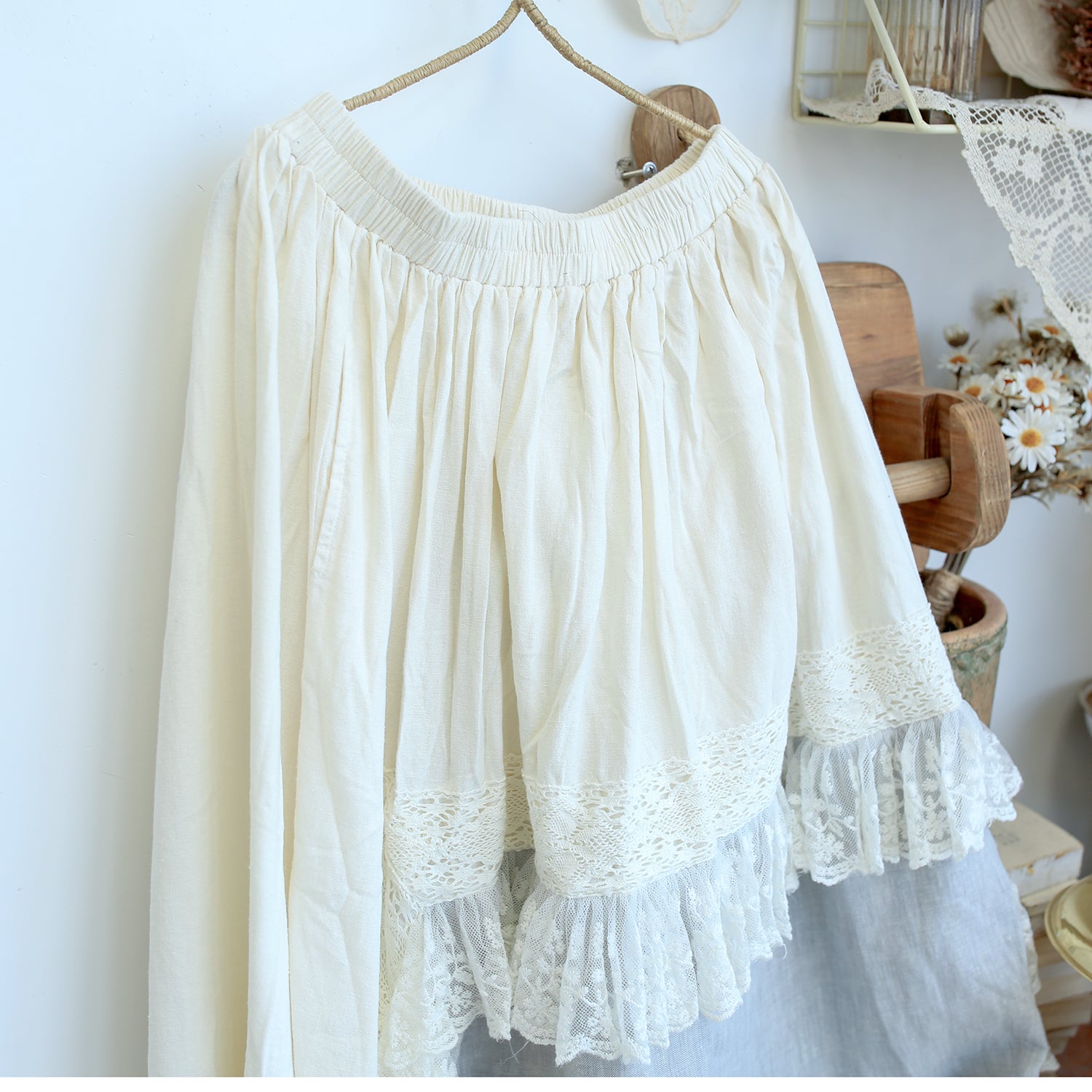 High Quality Lace Trim Linen Skirt